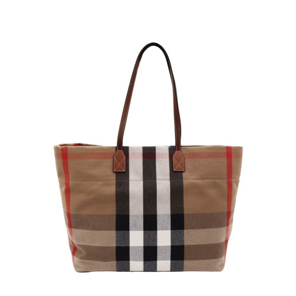 The elegant Burberry shopper "London" combines cotton with fine leather trim and features the iconic Giant Check pattern in beige. With generous space and comfortable straps, it is the perfect companion for style-conscious women who value timeless elegance and functionality. Material outside: Textile, leather trim, leather shoulder strap and bag bottom. Material inside: Textile, attached inner compartment. Dimensions: 11.8" H x 13.7" L x 5.5" W. Shoulder strap: 22 in.